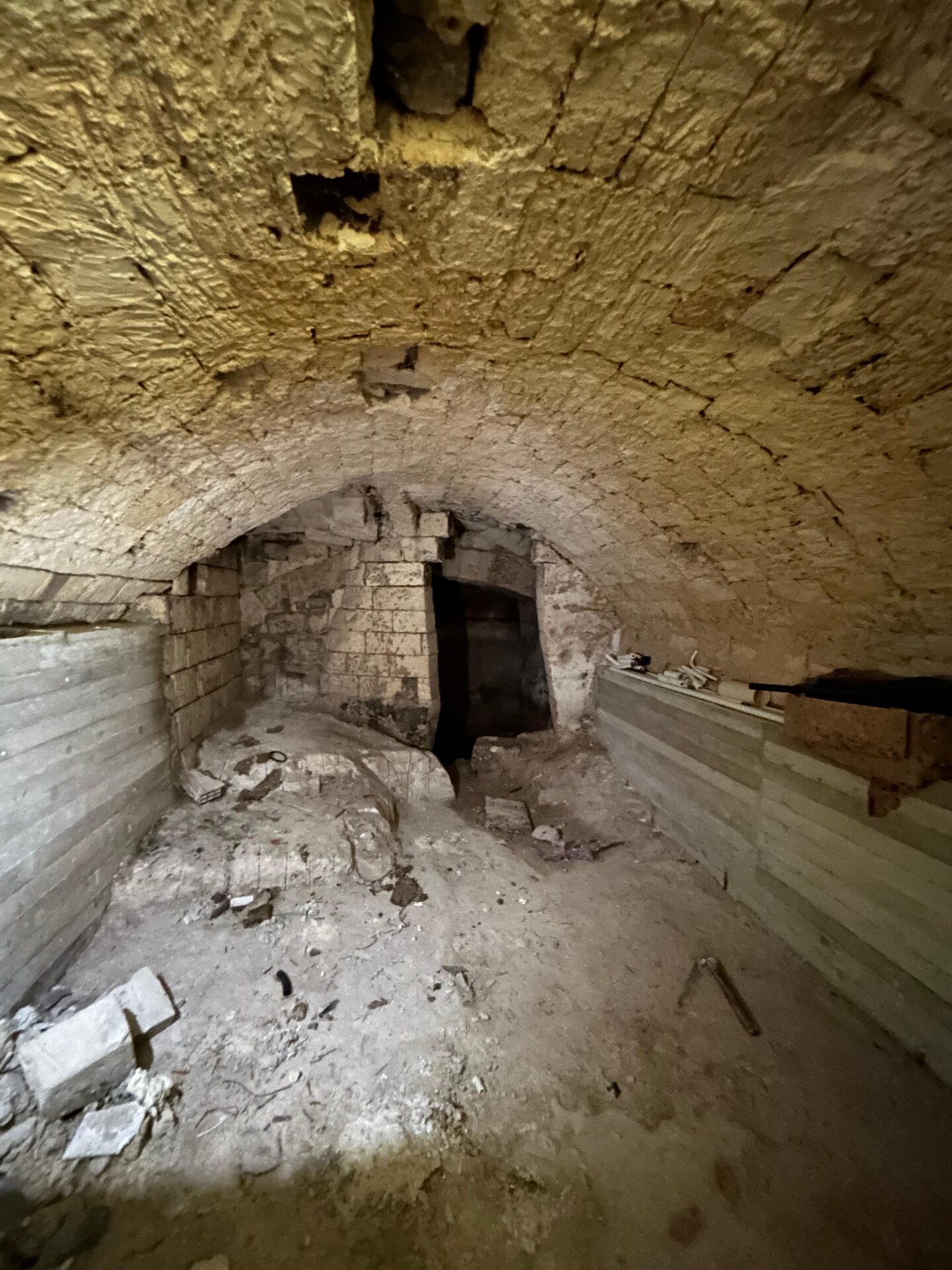 Piano Terra: Spazio con bagno e volte in pietra, ideale come ufficio di rappresentanza o reception, collegato internamente al seminterrato.